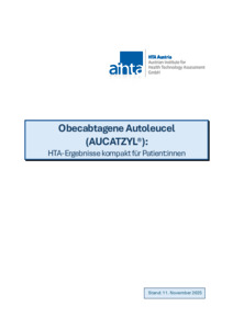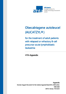 AIHTA Appraisal Board Author Group, HTA Austria (2025): Obecabtagene autoleucel (AUCATZYL®) for the treatment of adult patients with relapsed or refractory B-cell precursor acute lymphoblastic leukaemia. Decision Support Document for the Austrian Appraisal Board 005.